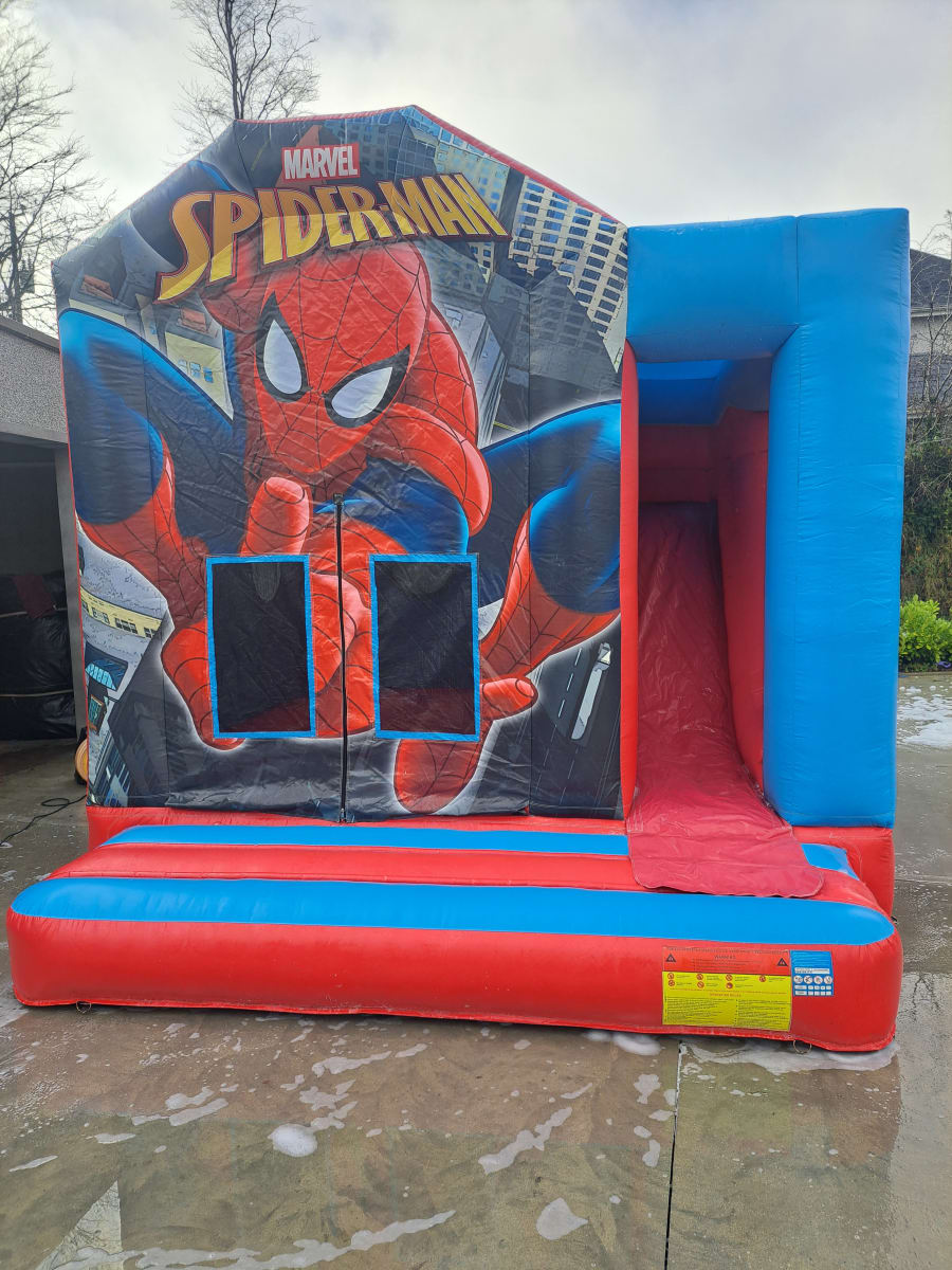 Spiderman bounce and slide. Lovely fully covered castle inside you will find and nice size bounce area climbing ladder to the slide. Plus theres a basketball ring inside so the kids can shoot some hoops lol.. Book one day get 2nd day free. HIRE IN MONAGHAN CAVAN LOUTH ARMAGH. BOUNCING CASTLE HIRE.