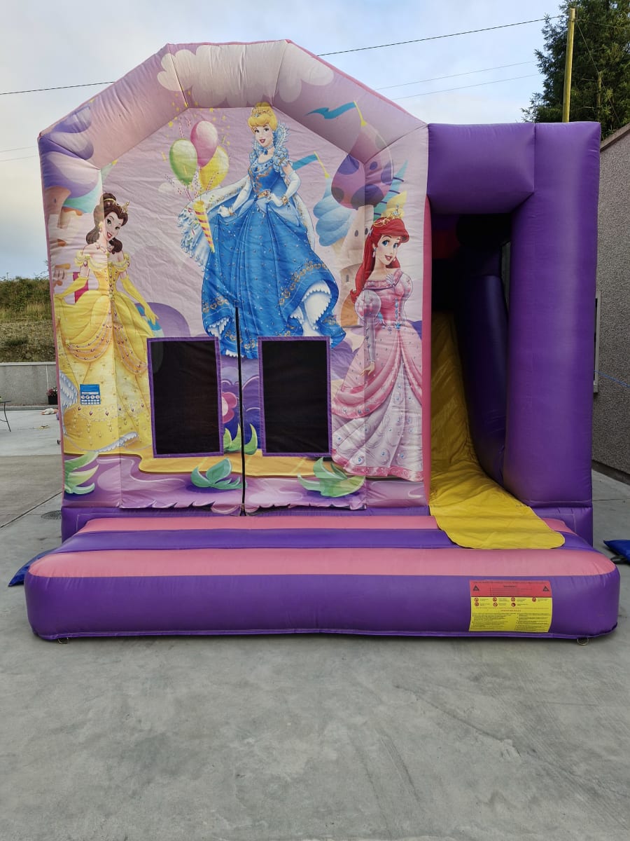Princess castle 14x12ft. Lovely new combi castle great bounce area with a good high slide. Fully enclosed for the not so great days. Delivered to Cavan Monaghan Armagh. WEEKEND HIRE.