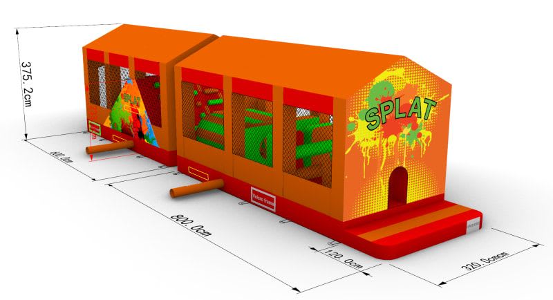 Splat 53ft obstacle course. Lovely eye catching obstacle course with its classy colours . Enter you go to find a world of obstacles/ bish bash /tunnels in your way soon you will meet a very high climbing wall to be faced with an xxl slide out you go to face it all over again. fully covered unit . suitable for 4+ BOOK ONE DAY GET SECOND DAY FREE!! HIRE IN monaghan cavan louth armagh.NB THIS UNIT CAN ONLY BE SET UP ON GRASS.