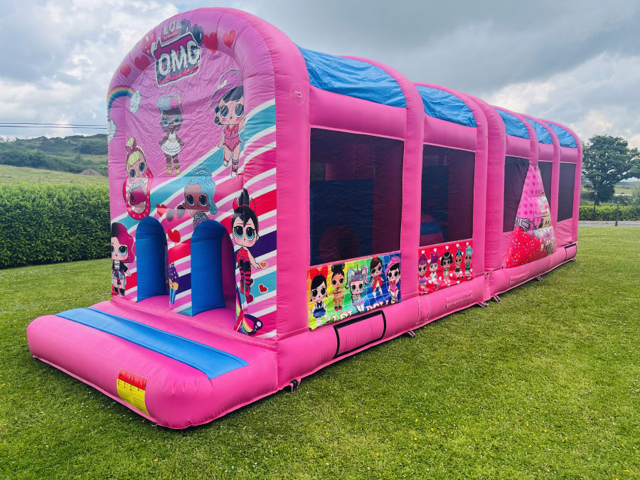 42FT LOL OBSTACLE COURSE. Look how cool this one is for all those special ladies. Inside you will find lots to do . Bish bash tunnels knocking walls. good steep climbing wall and to finish a great high slide. now how much more could a girl ask for than having this for there birthday. Hire in monaghan cavan louth armagh. Book one day get second day free. LOL OBSTACLE COURSE HIRE.